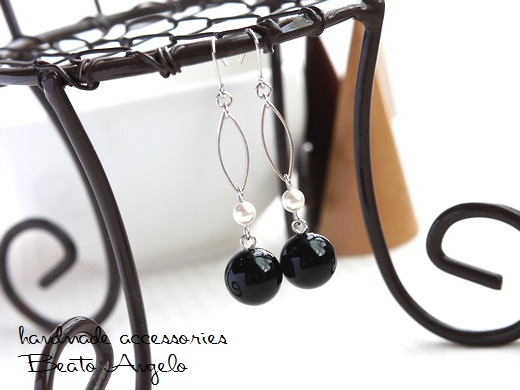 > ◇◆+angelo+天然石ブラックオニキスとマーキスのピアス(p-133)S シンプル 大人 チタン 樹脂 イヤリング