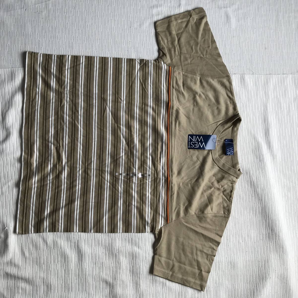 - 半袖丸首カジュアルシャツ Mサイズ ボーダー柄 WEST WIN○未使用