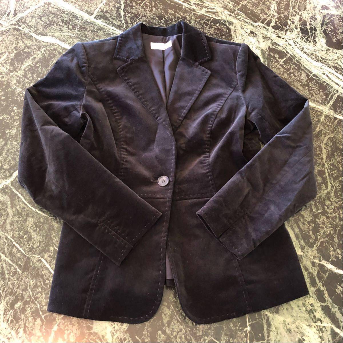 > 【美品】couvee★厚手テーラードジャケット 9号 Mサイズ ハンドステッチ コットン 綿 黒 ブラック 裏地あり 秋冬