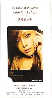 - 浜崎あゆみ 18th 日本ゴールドディスク大賞 音楽ギフトカード1000円 アーティスト・オブ・ザ・イヤー コレクション用 841438AA1074Q2