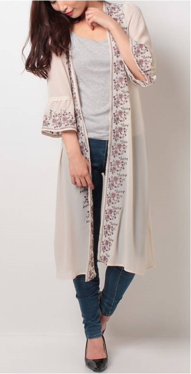 - 460◇刺繍入りロングガウンカーデ 生成り キナリ axes femme アクシーズ ファム TS413X15 ロング カーデ