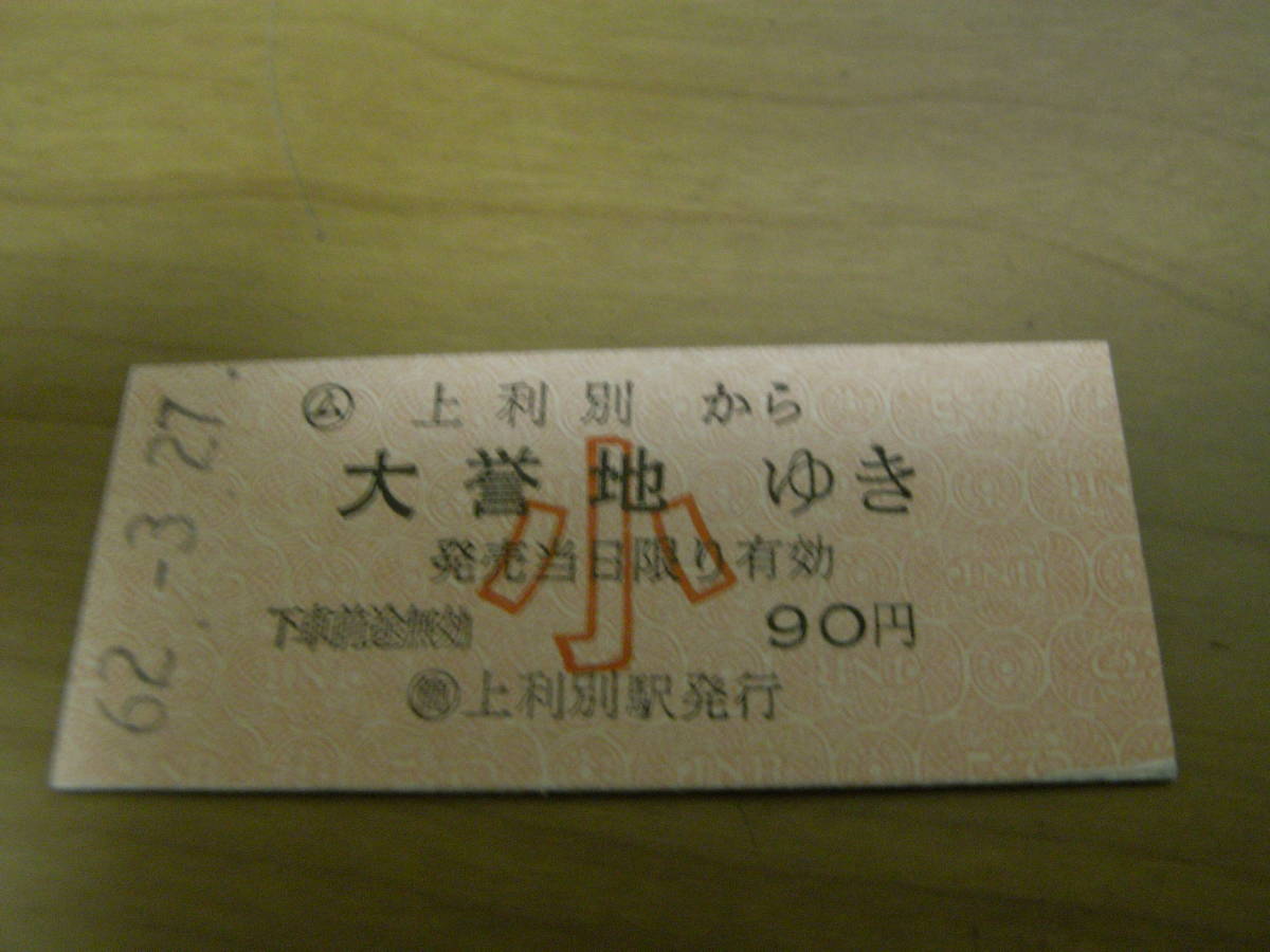 - 国鉄池北線 ム 上利別から大誉地ゆき 小90円 昭和62年3月27日 簡 上利別駅発行