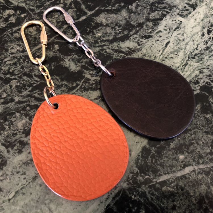 - 【美品】レザーバッグチャーム2個セット★卵型レザープレート オレンジ ブラウン 茶色