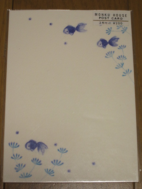 - ポストカードセット★MONKU HOUSE 金魚 青 3枚セット★暑中見舞い葉書はがき