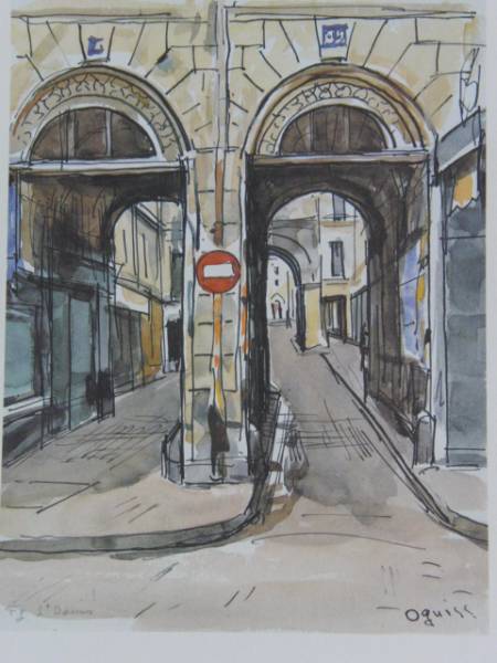 - 【荻須 高徳/0guiss】 『フォーブール・サン・ドニ』 素描、版上サイン入り、希少、新品額装付72、落札代金のみ、ara
