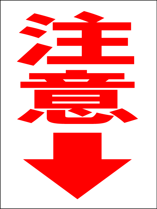 - シンプル看板 「注意(矢印下)」Mサイズ 工場・現場 屋外可(約H45cmxW60cm)