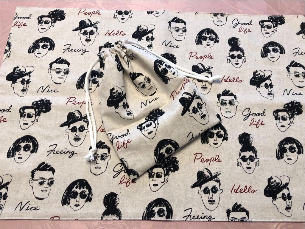 - No.180 大判裏付ランチョンマット&巾着 ハンドメイド 40x60 フェイス柄 男の子