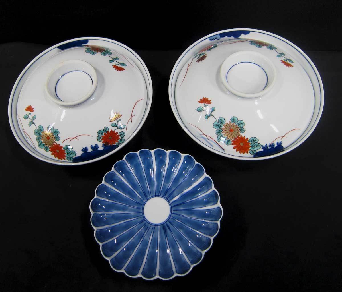 - 有田焼 菊文蓋向1 菊金彩碗2・高台菊文皿1 中古品