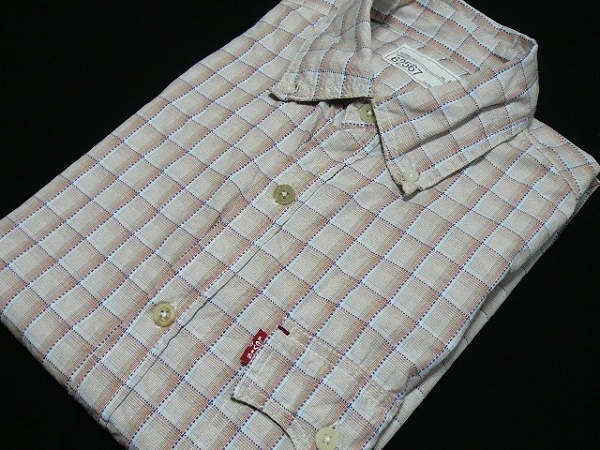 - 美品LEVISリーバイスRedTab半袖フラップボタンダウンシャツL(40)ベージュ\7700