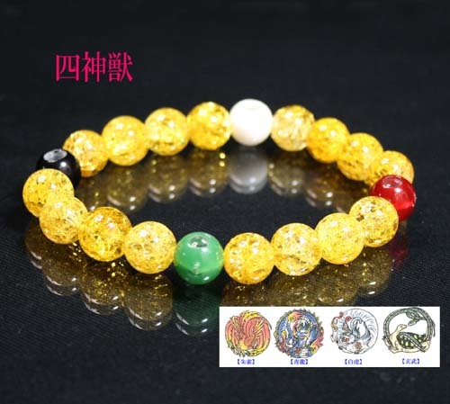 - 陰陽五色・爆裂水晶「四神獣」ブレスレット 18cm