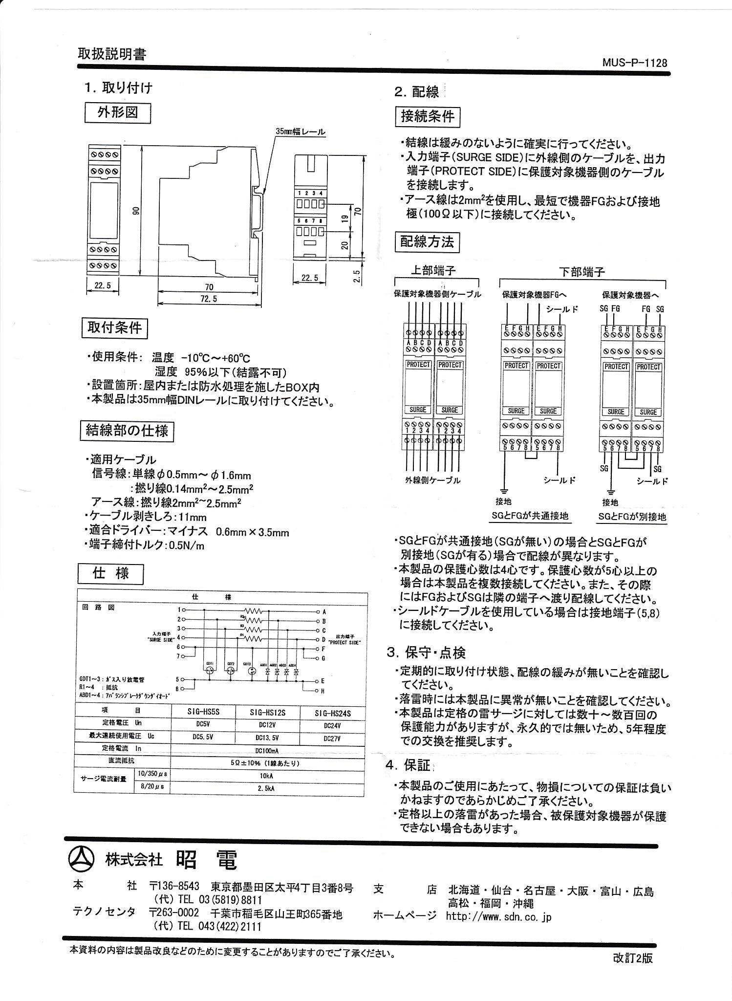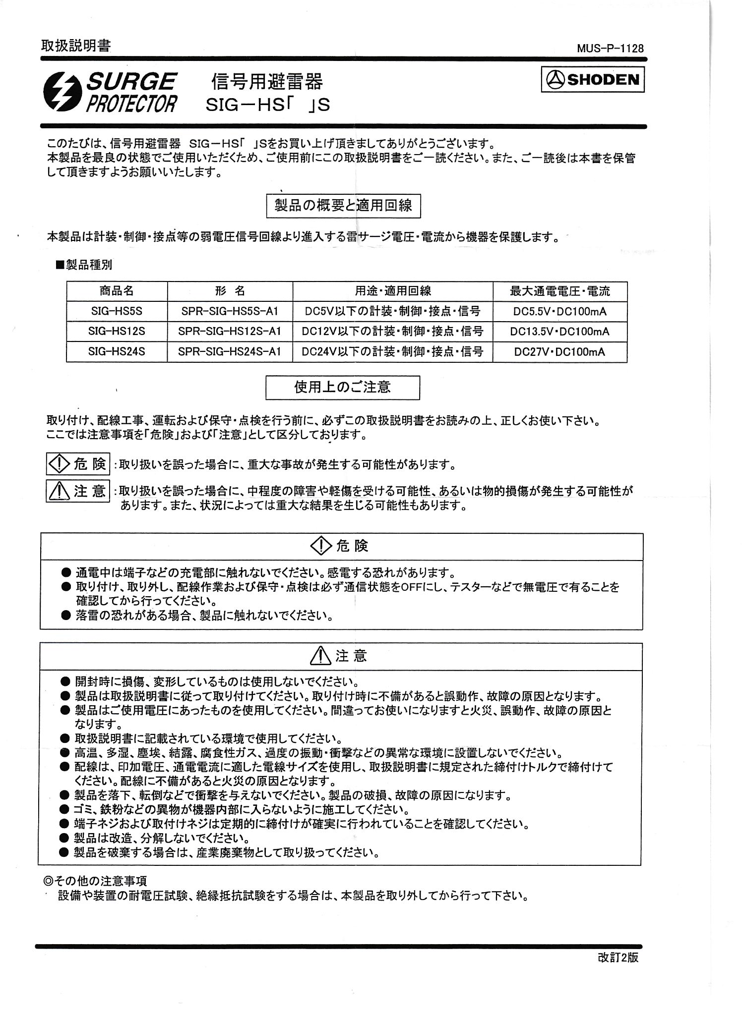 > OZ33 昭電 SHODEN 信号用避雷器【SIG-HS12S】DC12V以下用 DINレール取付可