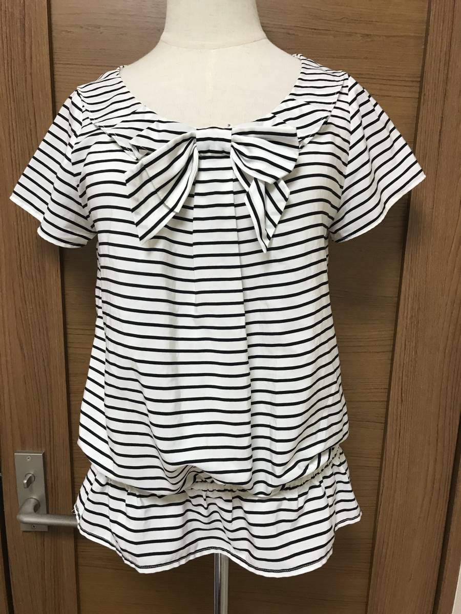 - 美品★ロペROPEふんわりボーダーリボンブラウスM★4578