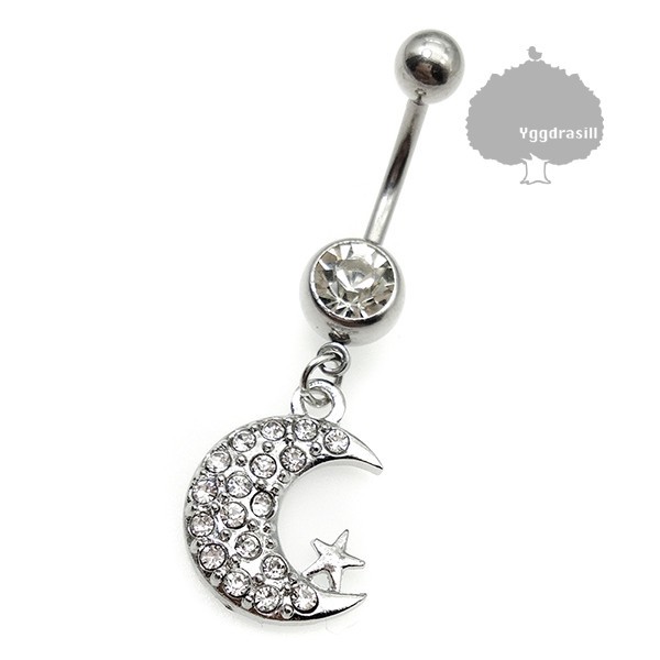 - YGG★新品 月 ムーン モチーフ ボディピアス バナナ バーベル クリア 316L サージカルステンレス ラインストーン