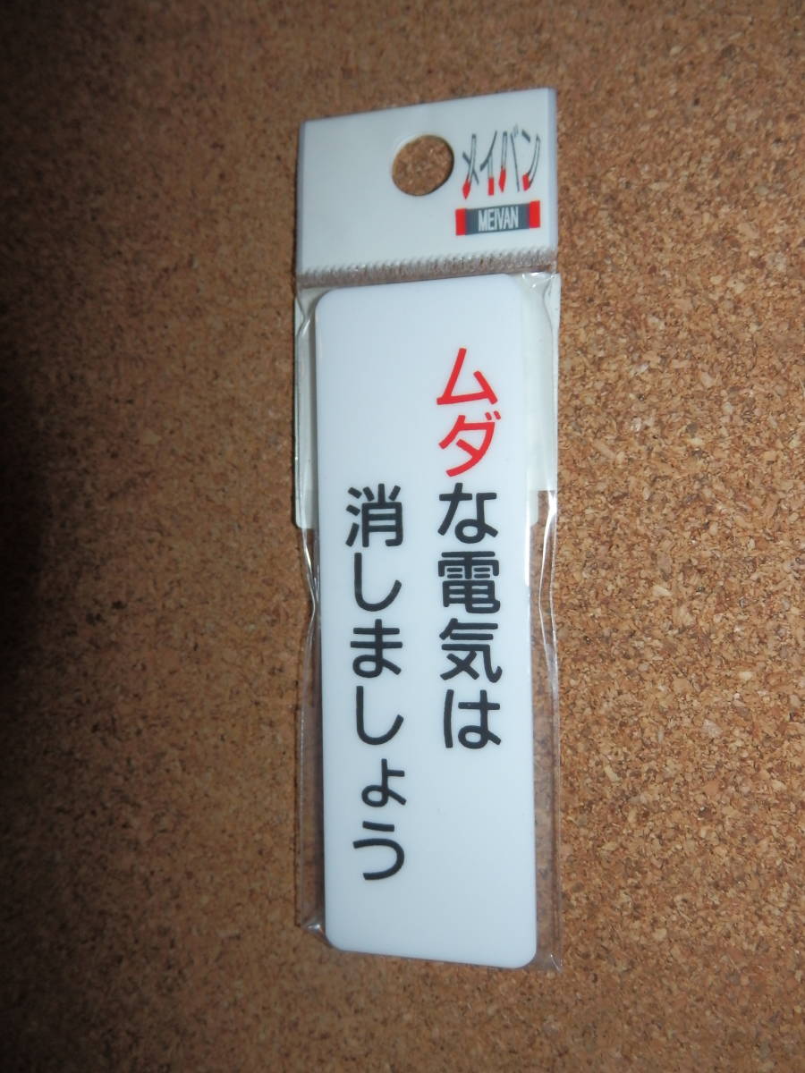 - ⑤保管品新品★メイバン 「ムダな電気は消しましょう」 小型プレート ホワイト