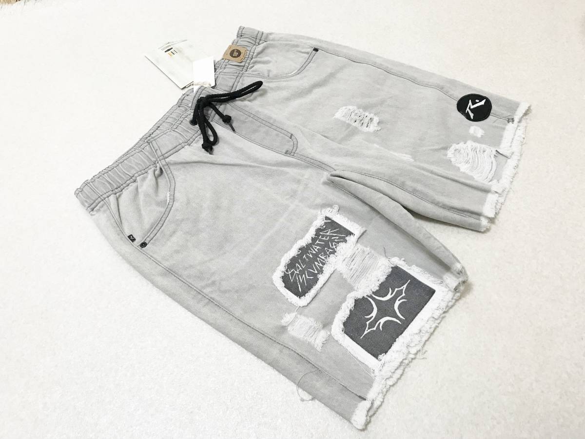 - メンズ 32サイズ:ラスティ【RUSTY】ウォークショーツ・ダメージデニムハーフパンツ:グレー 定価:7,900+税