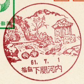 - ka228 【風景印/初日】福島・下関河内[昭61.7.1]