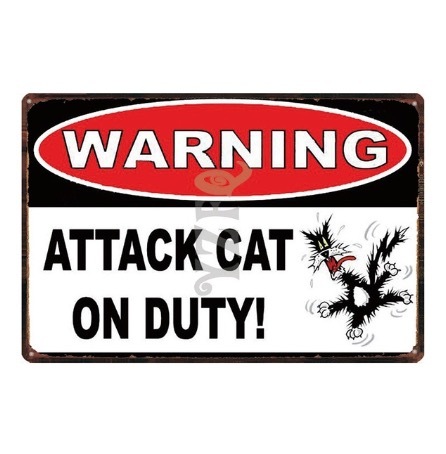 - A324 メタル看板 ブリキ看板 ウォール サイン レトロ風 おしゃれ おもしろ 金属製 プレート 番犬 警告 【猛猫注意 DU2776】