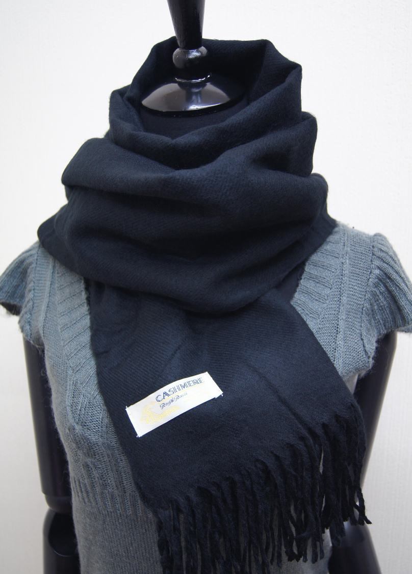 - カシミア100%英国”ストール”新作ブラック〇*:..azu00c