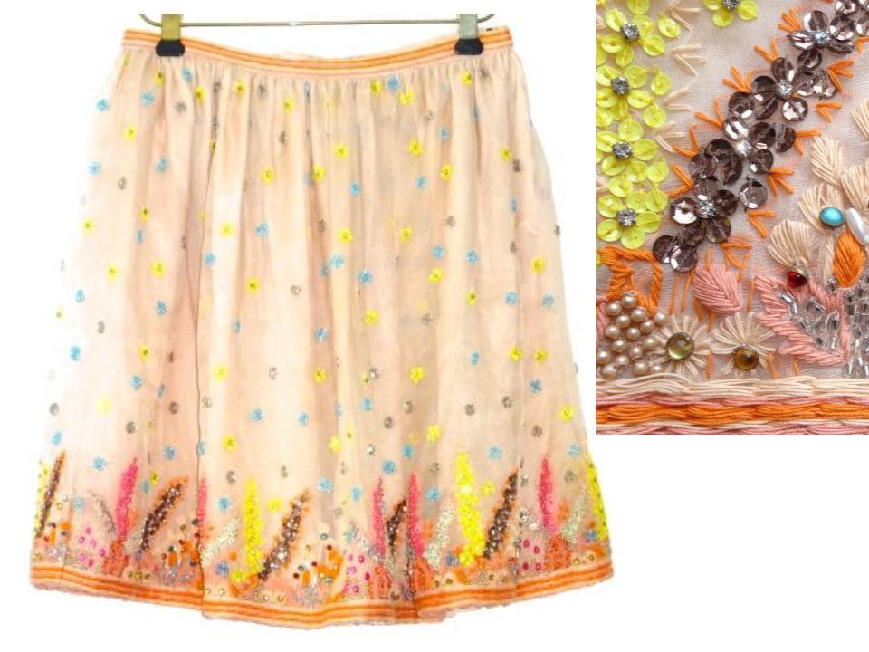 > ● 日本未発売 MANOUSH マヌーシュ スカート 36 SM スパンコール ビーズ 花 ピンク 新品 刺繍 ゴージャス シルク 豪華 ラインストーン