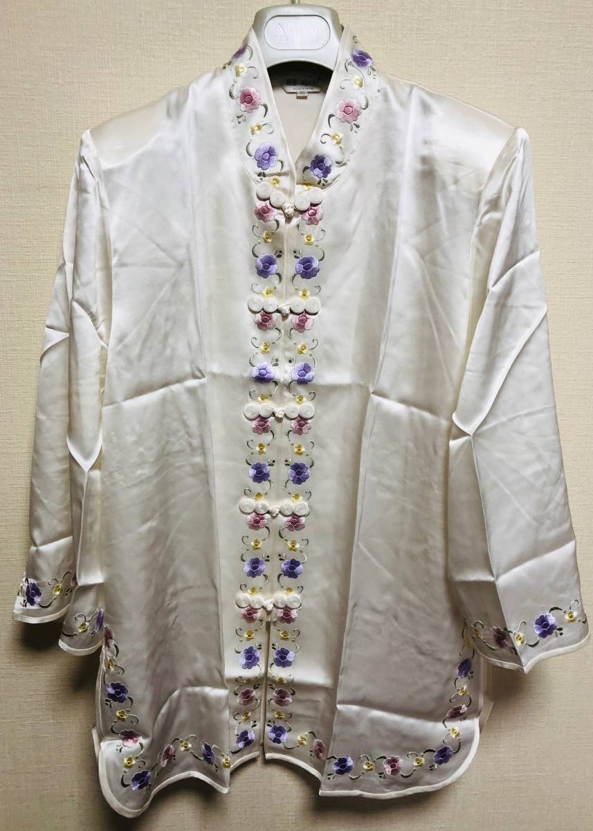 - 刺繍入りレディース高級シルク長袖ブラウスMサイズ新品格安即決