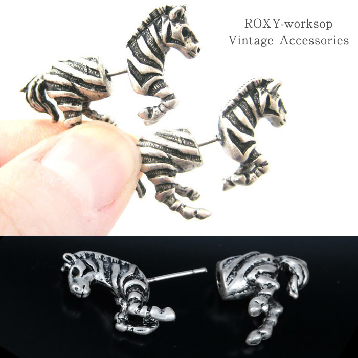 - シマウマ ピアス ビンテージ 馬 ゼブラ 可愛い アクセサリー 大人 可愛い ガーリー シルバー ゴールド ハロウィン