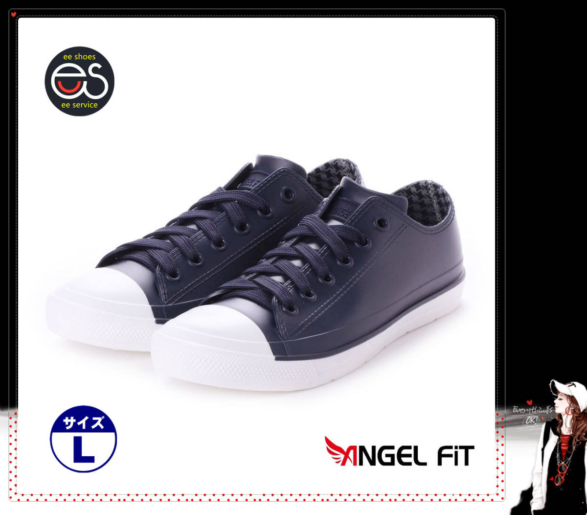 - ★新品★【19066-nav-l】 婦人レインシューズ 完全防水スニーカー 晴雨両用で急な雨でも万全 全天候型