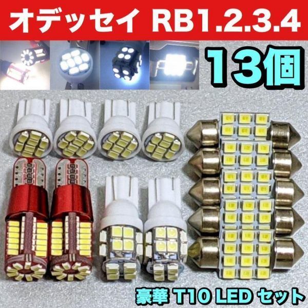 > オデッセイ RB系 適合 LEDバルブ ウェッジ球 T10 LED ルームランプ+ナンバー灯+バック+スモール ホワイト 13個セット ホンダ