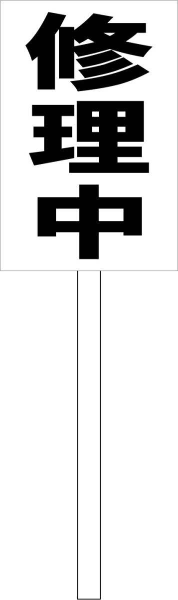 > シンプル立札看板「修理中(黒)」工場・現場 屋外可(面板 約H45.5cmxW30cm)全長1m