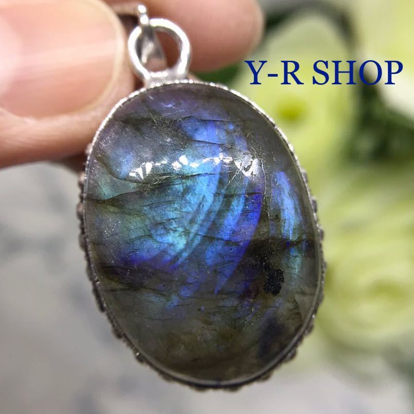 > 天然石★ラブラドライトのアンティーク調オーバル型ペンダントトップ★レディースネックレスシルバー刻印925カラーストーン 新品