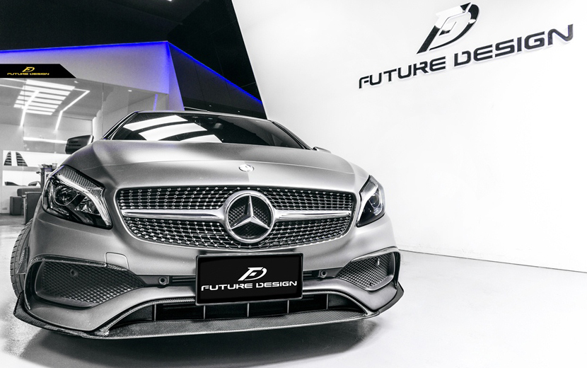 > 【FUTURE DESIGN】BENZ メルセデス・ベンツ A-Class W176 後期車バンパー用B26 リップスポイラー カナード 本物Drycarbon ドライカーボン