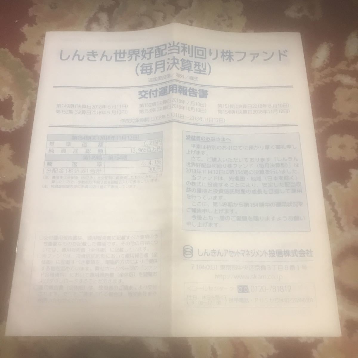 - しんきん配当利世界高回り株ファンド(毎月決算型)交付運用報告書(作成対象期間2018年5月11日~2018年11月12日)
