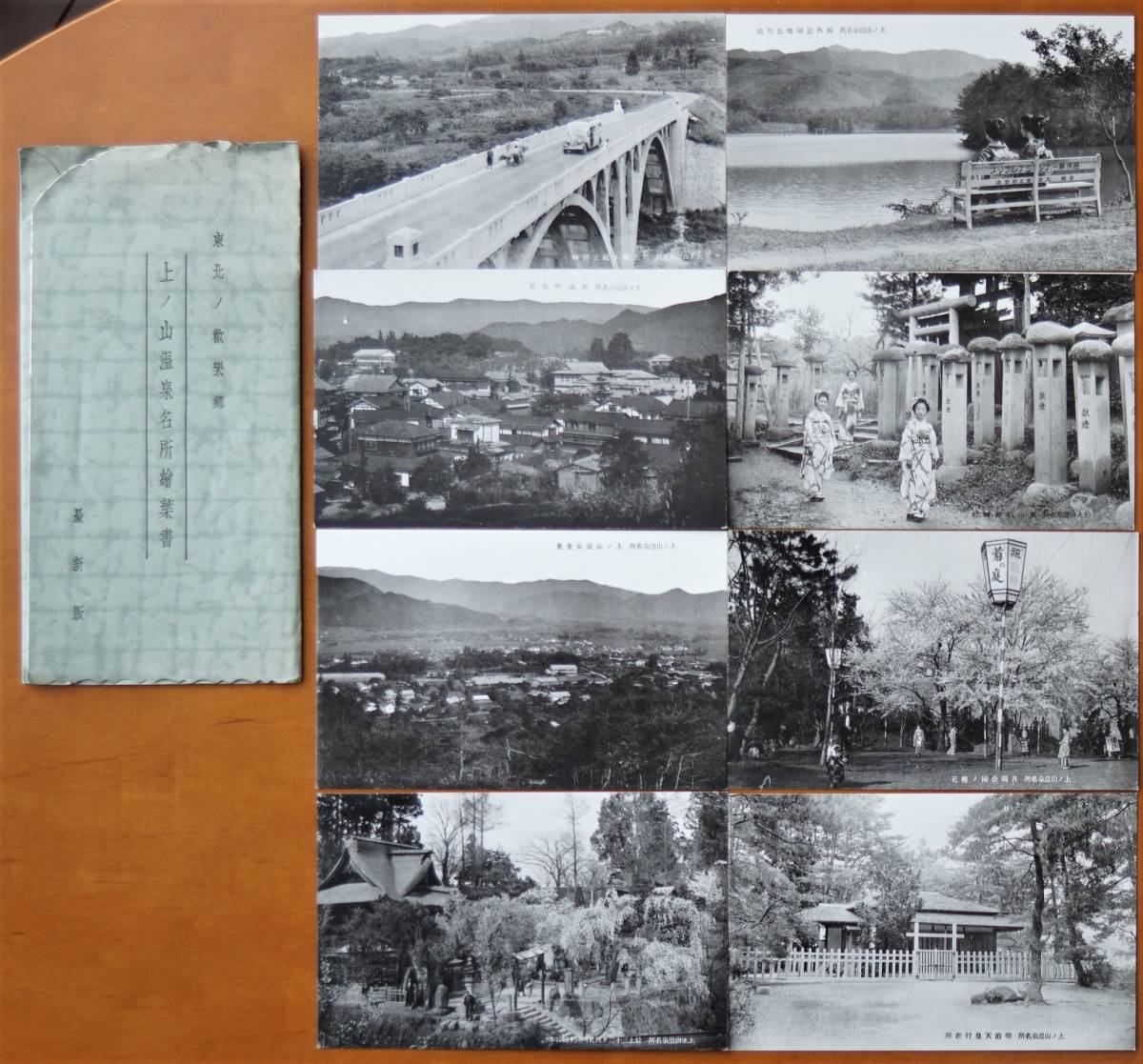 - 上ノ山温泉名所絵葉書 モノクロ8枚:山形県上山温泉 栗川稲荷神社 新湯町全景 月岡公園櫻 龍王橋と蔵王連峰 忠川池 湯の上観音寺 舞子芸者