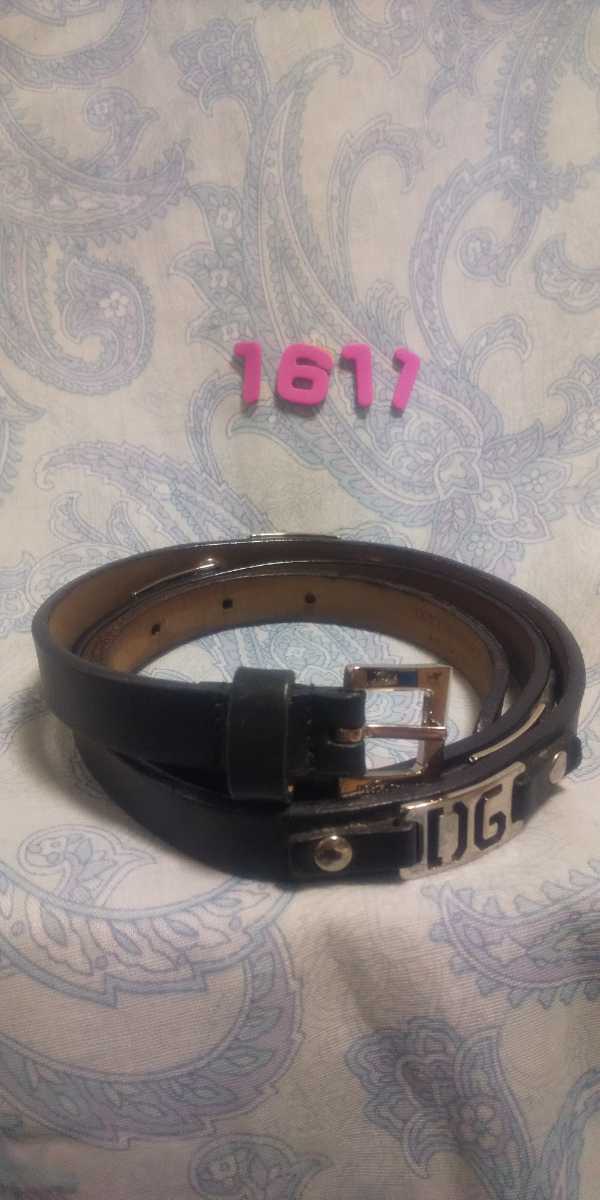 - 1611ドルチェ&ガッバーナシルバースクエアバックルのロゴプレート付きナロー黒レザーベルトイタリア ミラノ付属品なし