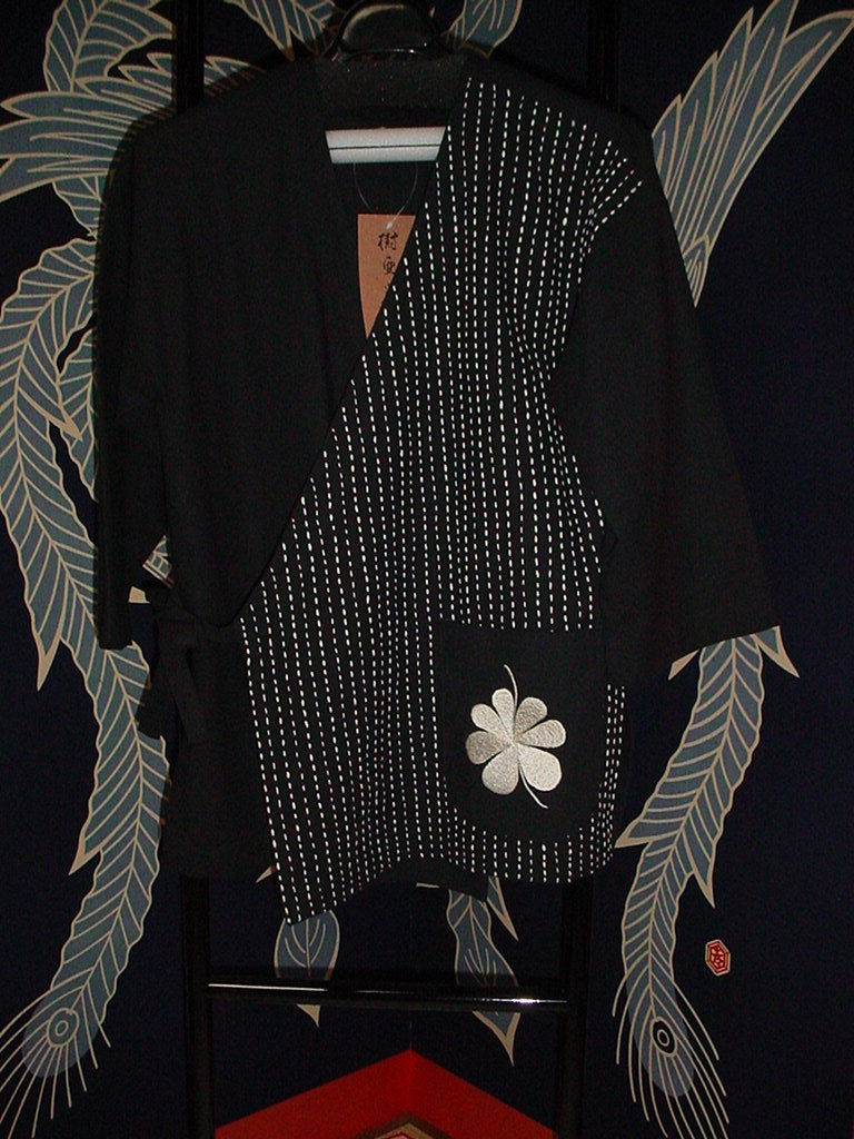 - 【特選 高級 樹亜羅 一杢 作務衣 婦人物 サイズ 手刺し子と花 ブラック 新品 日本製】