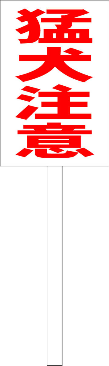 > シンプル立札看板 「猛犬注意(赤)」その他 屋外可(面板 約H45.5cmxW30cm)全長1m