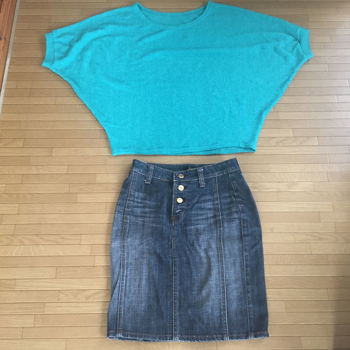 - レディースSサイズ ブランド服セット売 NUVE ジーンズタイトスカート 数回使用のみの美品 子供150サイズ の方も半袖シャツメッシュ涼し
