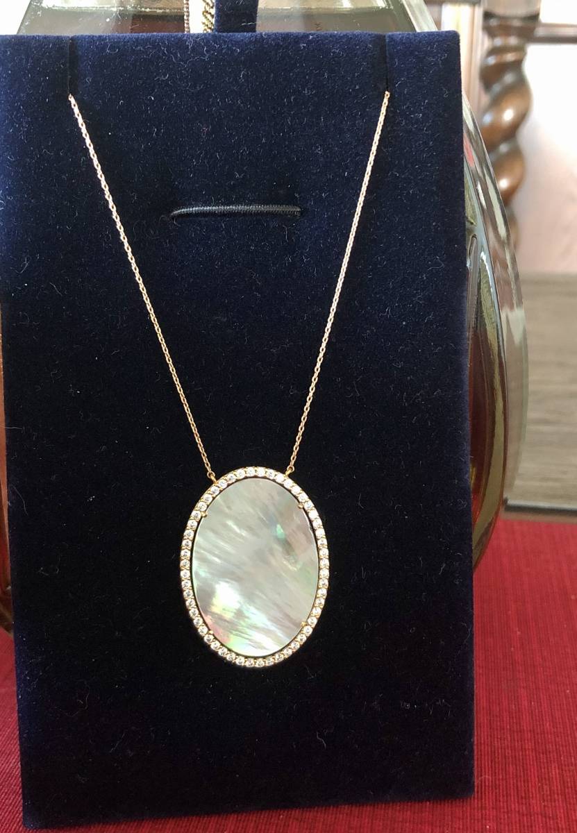 - ■ 大きめシェル ロングネックレス ラインストーン メレダイヤ風 七色の光沢 未使用 長さ調節 アジャスター付