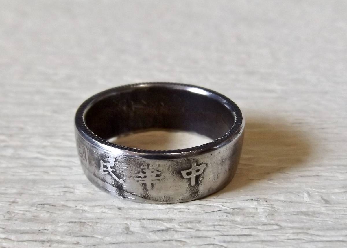- 25号 パワー コインリング 梅の花柄 台湾白銅貨使用 中華民国拾圓 指輪 (11584)送料無料 新品 未使用 金運アップ