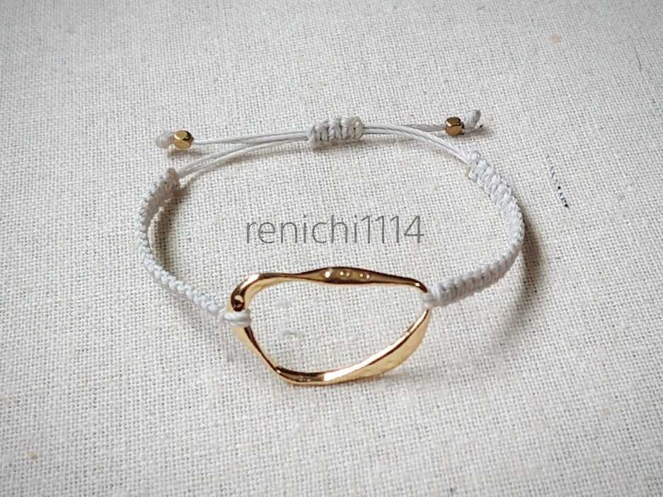 - リングブレスレット☆ライトグレー&ゴールドリング☆ワックスコード