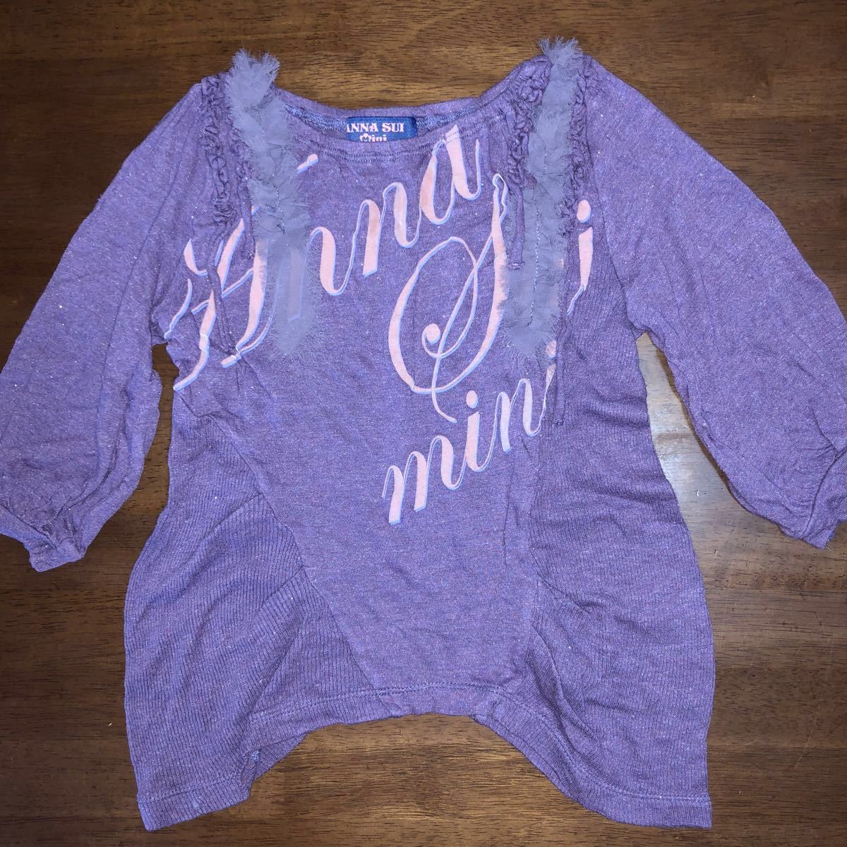 - 【ANNA SUI mini/アナスイミニ】 七分袖カットソー 半袖Tシャツ 100㎝ 中古 アシンメトリー うす紫