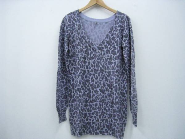 - VIGNY ヴィニー レオパード柄 Vネック ロングニット パープル F