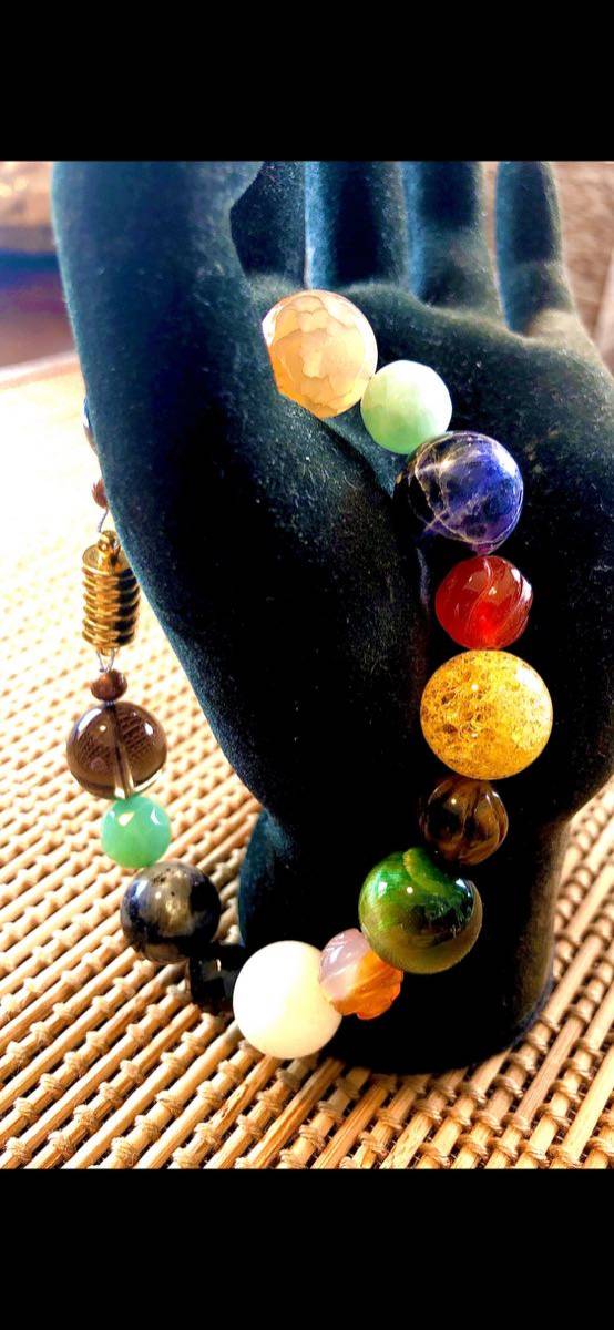 - 天然石ミックスストーンメンズブレスレット 14mm玉 10mmカット玉 長さ 22cm