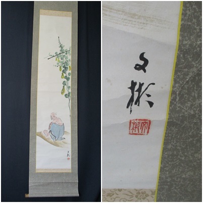 - ☆掛軸 人物 老人 ひょうたん? 方軸なし・状態悪いです 縦193㎝ 横40cm こい-59☆
