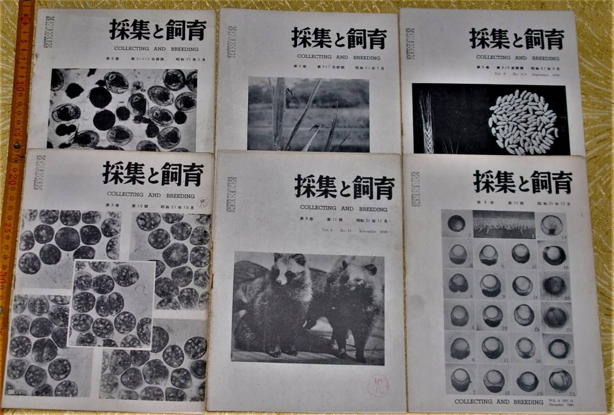 - y1111】採集と飼育 昭和21年5月ー12月 6冊 内田老鶴圃 動物 植物 観察
