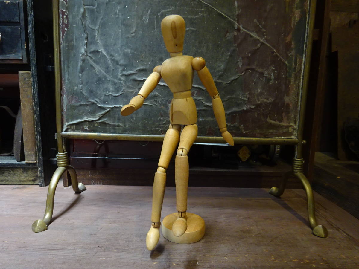 - 【フランス蚤の市木製デッサン用マネキン】美術アートウッド人形スケッチアトリエ古道具アンティークインテリアインダストリアル骨董無垢材