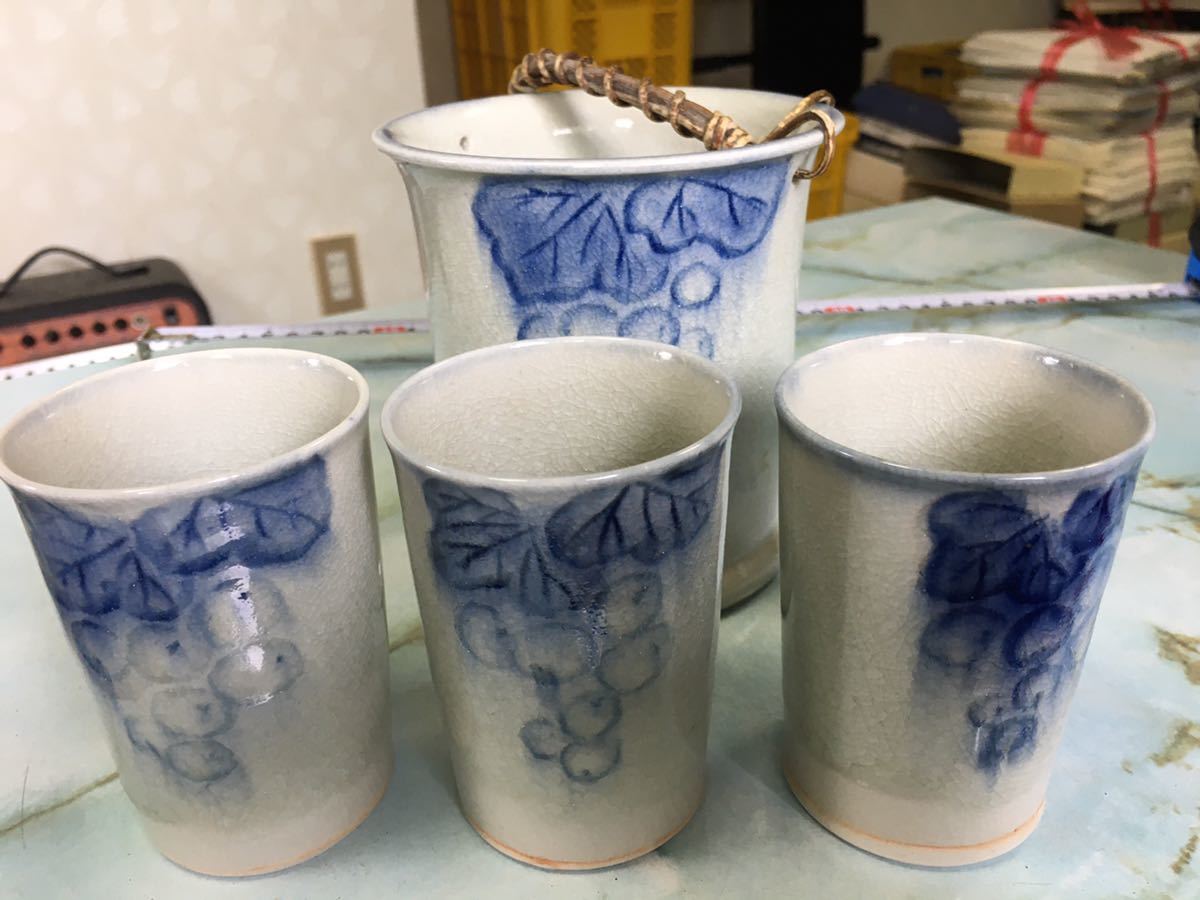 - 葡萄柄 一輪挿し染付 中国 煎茶道具 古玩 陶器 古民家蔵出レトロ 飲食店什器 紙ナプキン日本伝統の食器 花瓶ヴィンテージ和食器