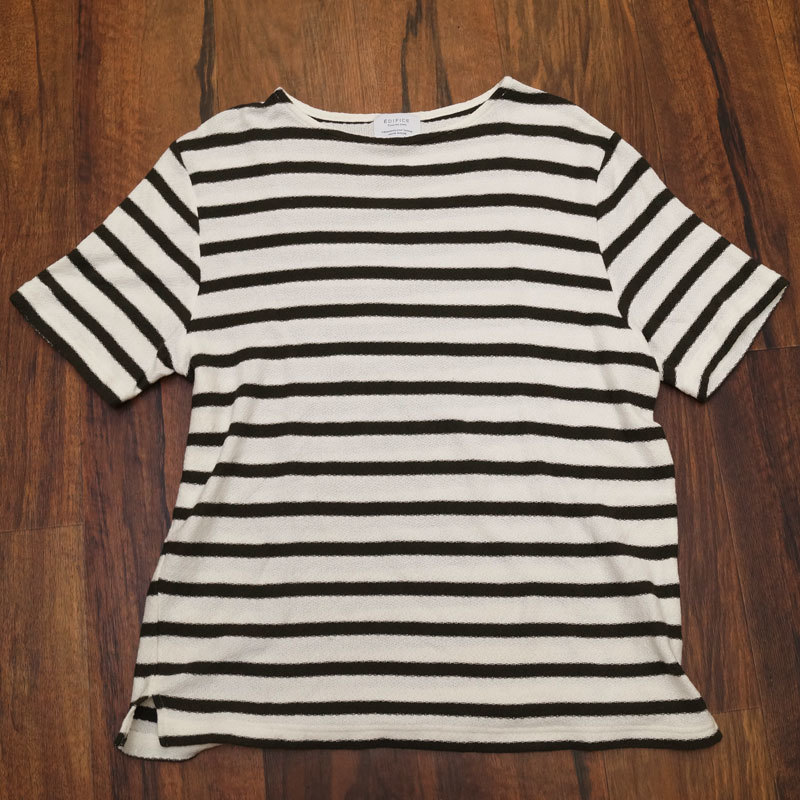 - yy06 エディフィス◆サマーニット カットソー 48 ホワイト カーキ ボーダー EDIFICE