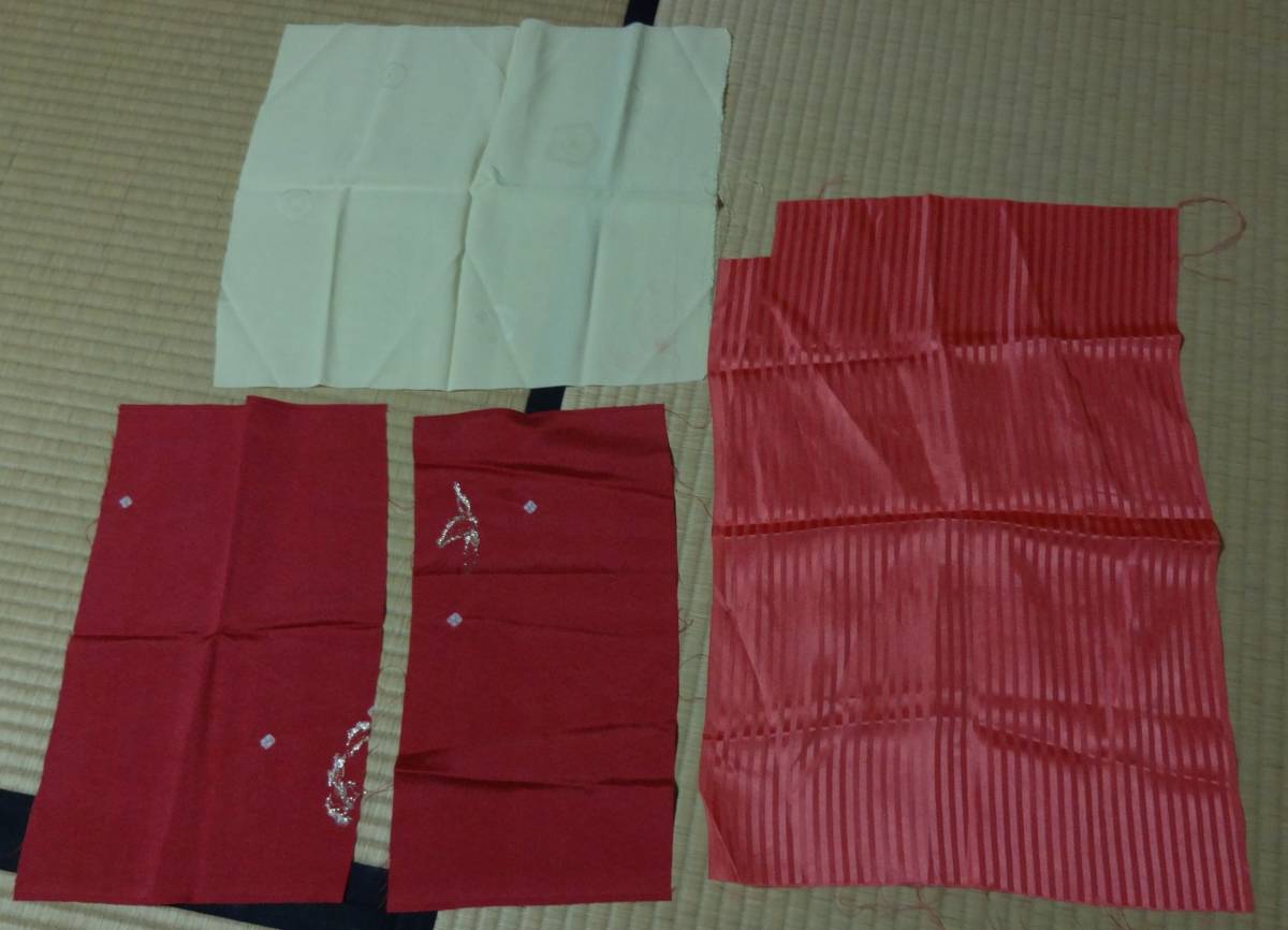 - 着物生地端切れ3種類、正絹、パッチワーク、小物入れに、ソーイング
