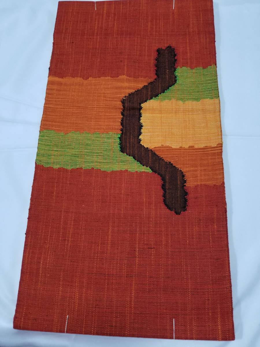 - 【桐輪】八寸帯☆送料無料*手織真綿紬*図案文*新品*仕付け糸付*美品{正絹*手織真綿紬*八寸名古屋帯}*4色糸織の図案文*お太鼓柄*№2819
