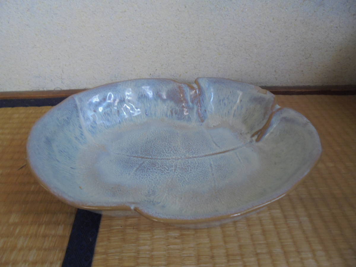 - 水盤-木の葉形・薄白/花器・活花・生け花・盆栽・床の間/華道・和室/一部縁に割れ欠け有り/銘等不詳